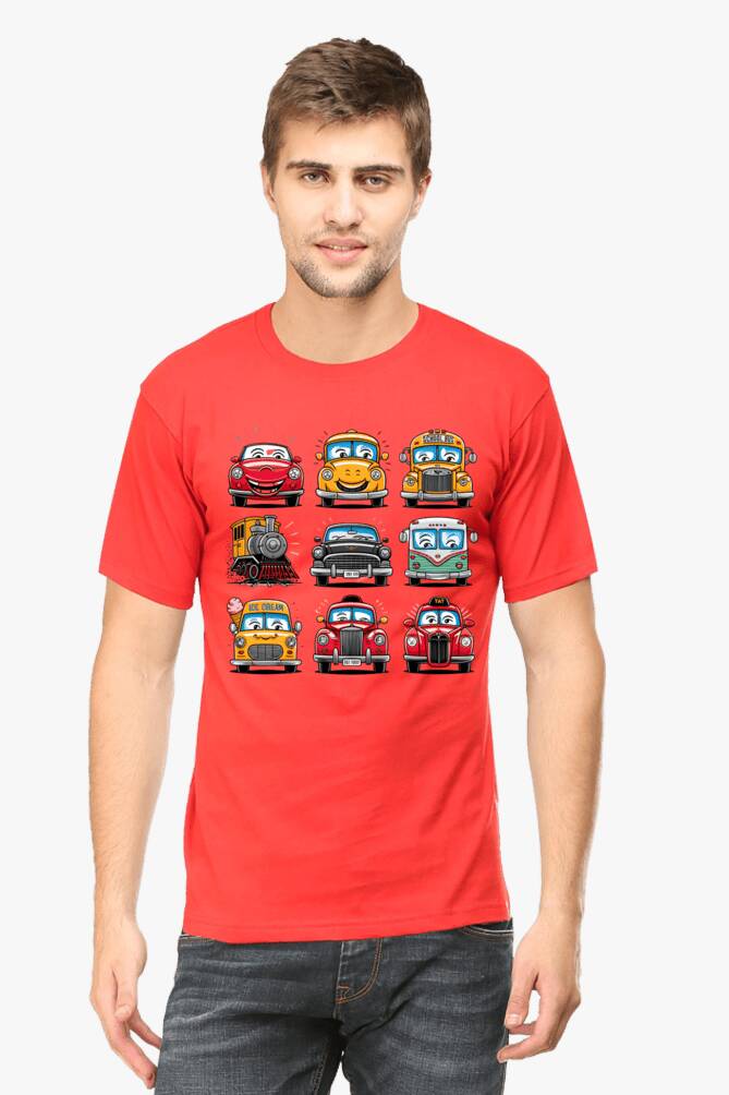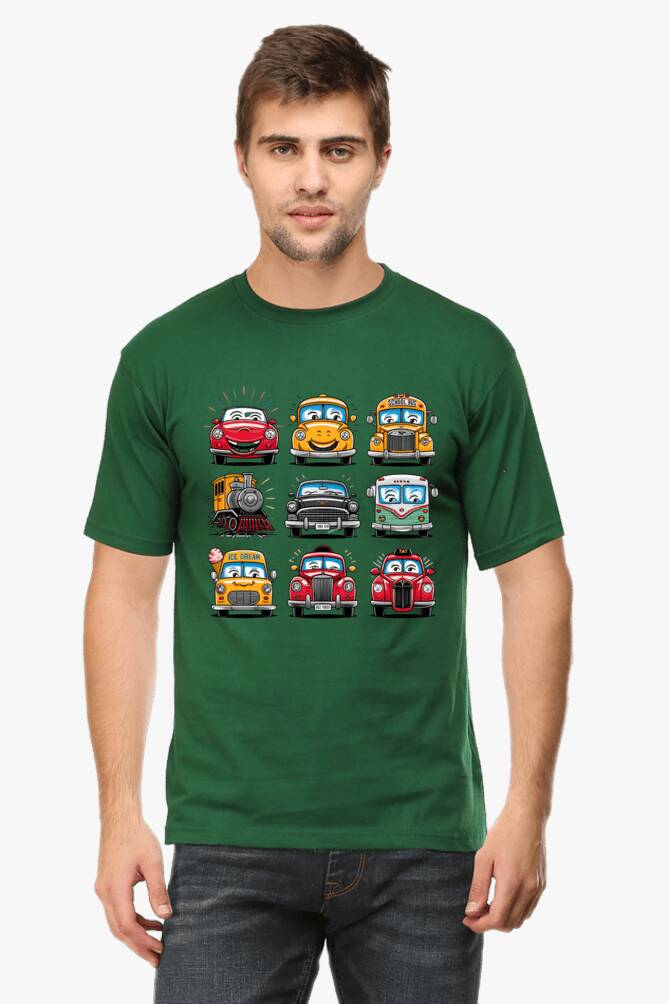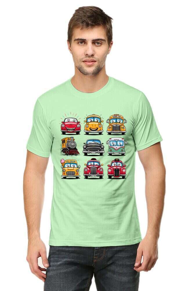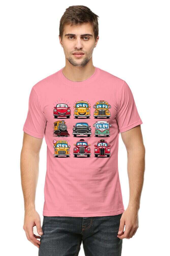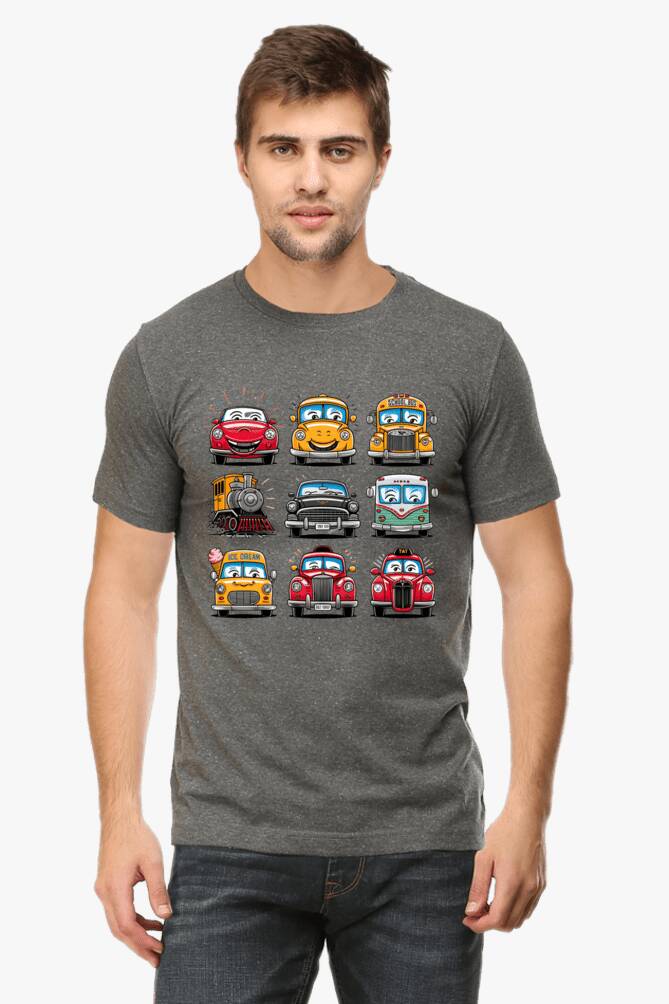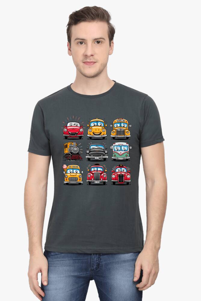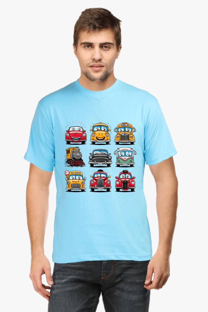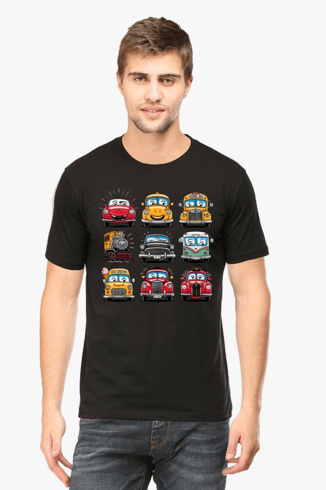 - round neck half sleeve t-shirt with car cartoons