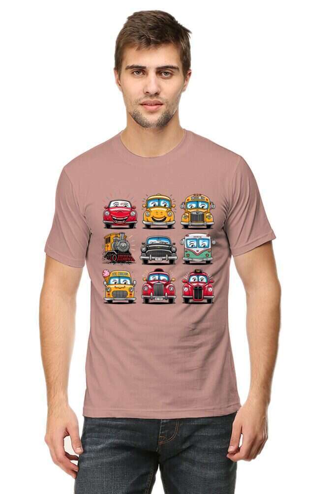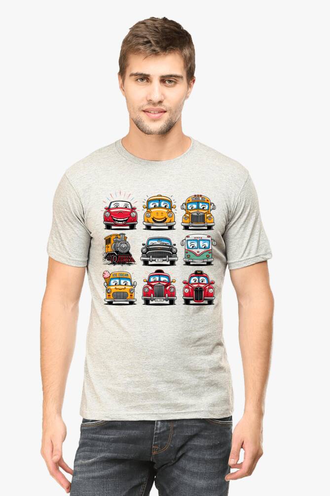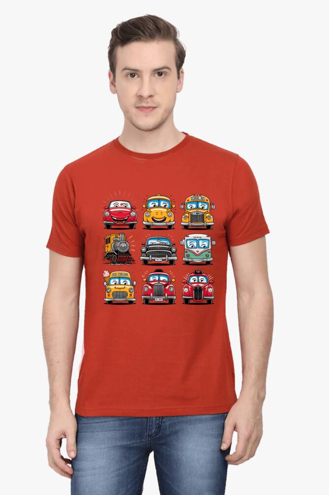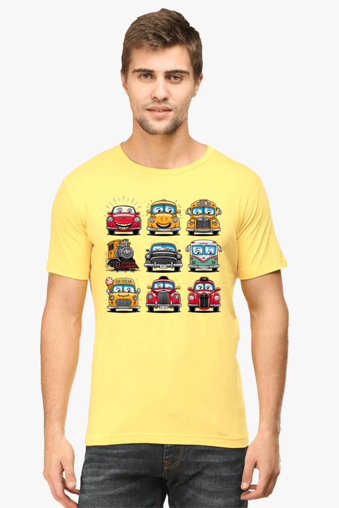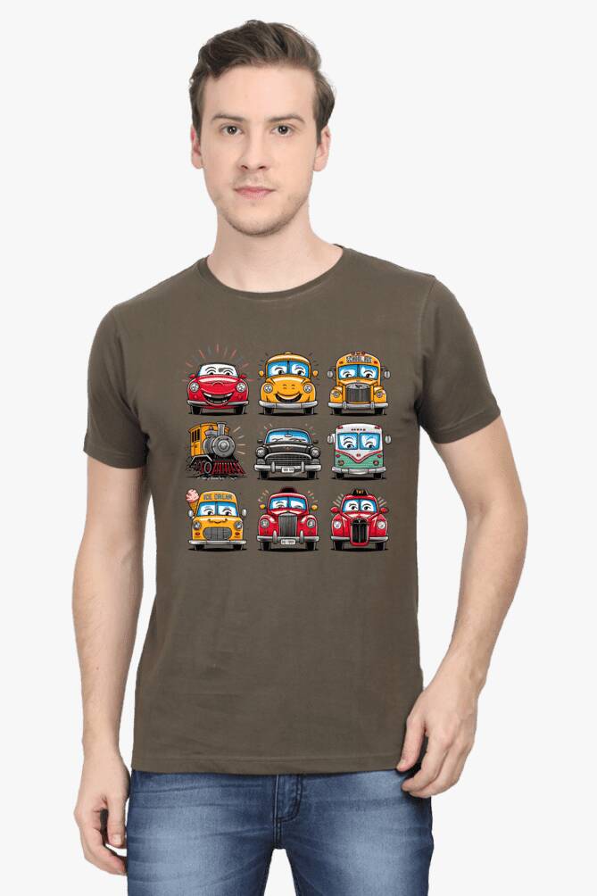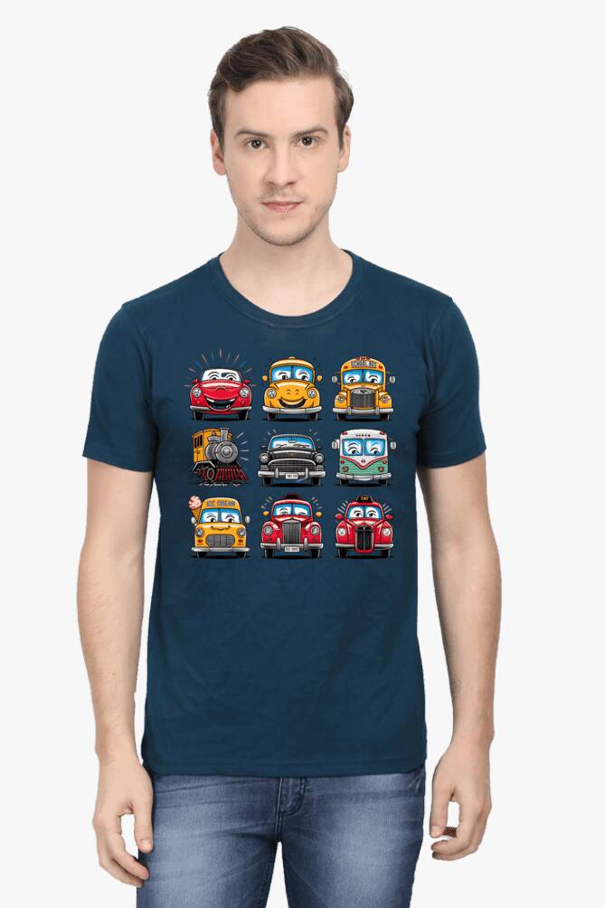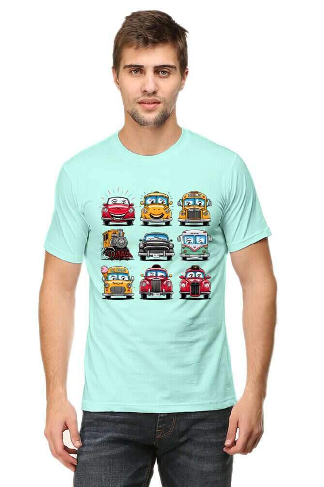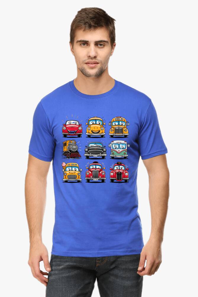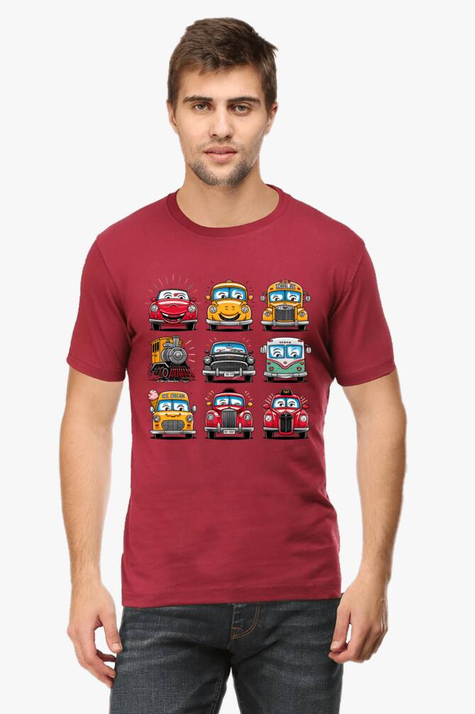 - round neck half sleeve t-shirt with car cartoons