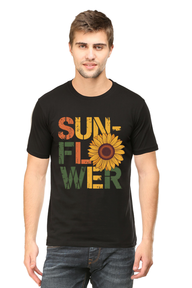 The classic crew neck and half sleeves make this sunflower graphic t-shirt easy to pair with jeans, joggers, or shorts. Its unisex-friendly style allows it to fit seamlessly into different fashion preferences, from minimalist to streetwear. Whether worn alone or layered under an open shirt, this tee offers versatile styling options.