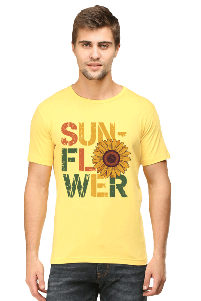 Sunflower Graphic T-Shirt – Yellow Vintage Sunflower Print Tee for Men